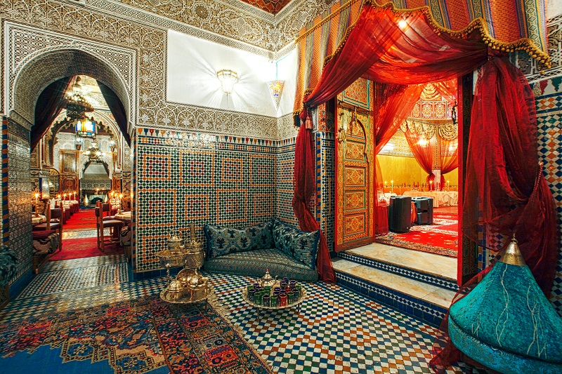 La création du salon Bahja remonte au 18ème siècle, son charme réside dans la beauté de ses murs et plafonds.
