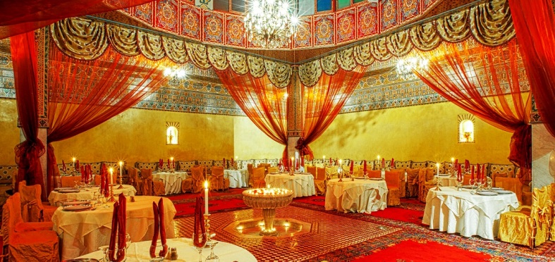 Découvrez une ambiance enchanteresse des mille et une nuits, à quelques pas de la célèbre et tumultueuse place Jemaa El Fna, au restaurant Dar Essalam, dit: "le premier restaurant marocain de Marrakech".
