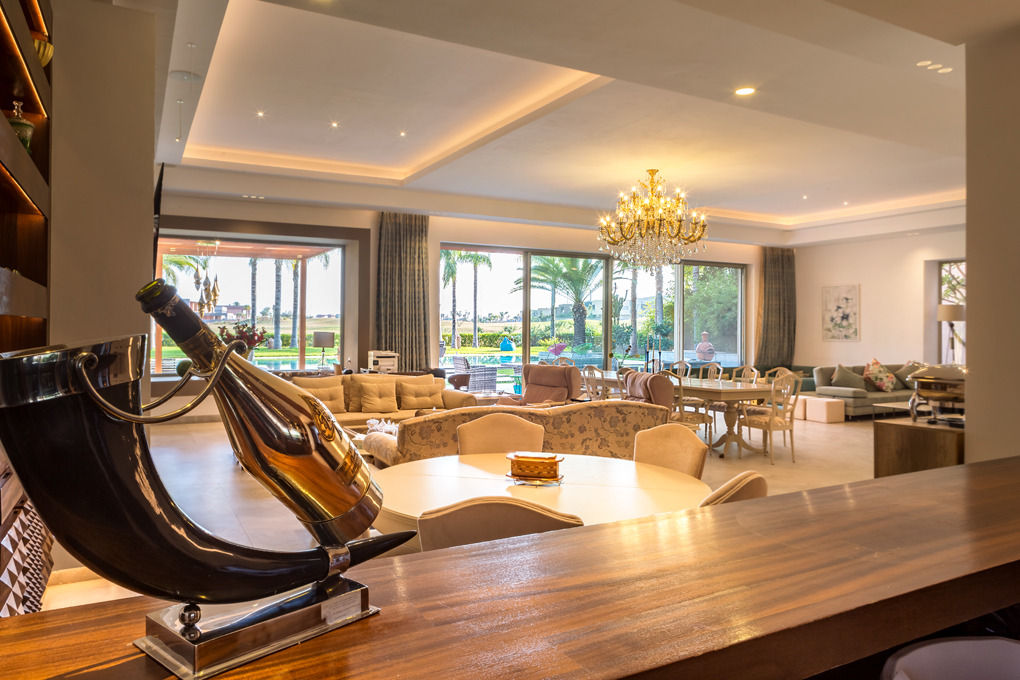 In the living room an English bar with all the equipment.