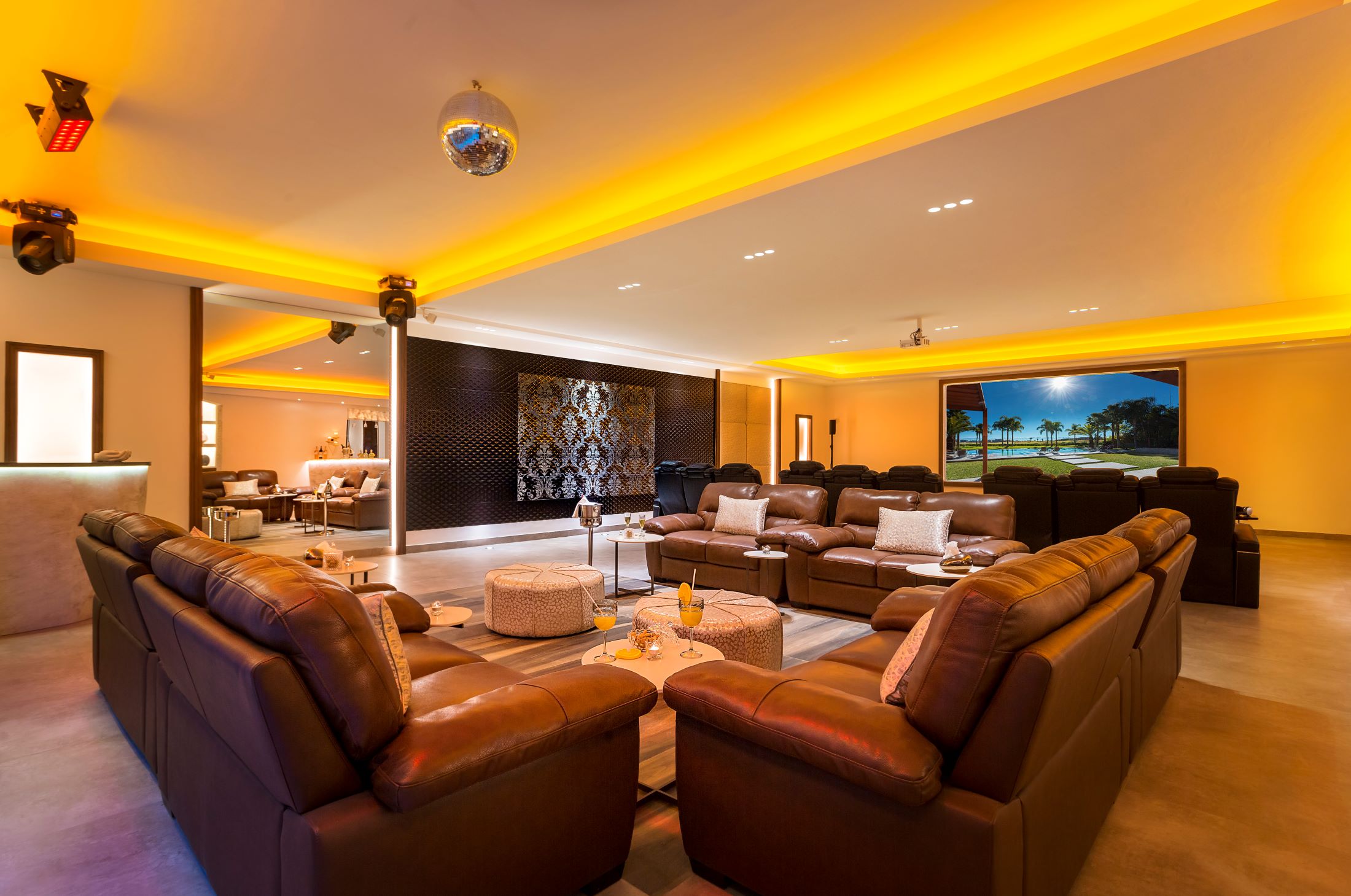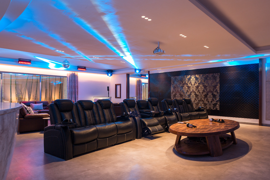 A huge cinema room with electric massage chair and a Bose sound system.