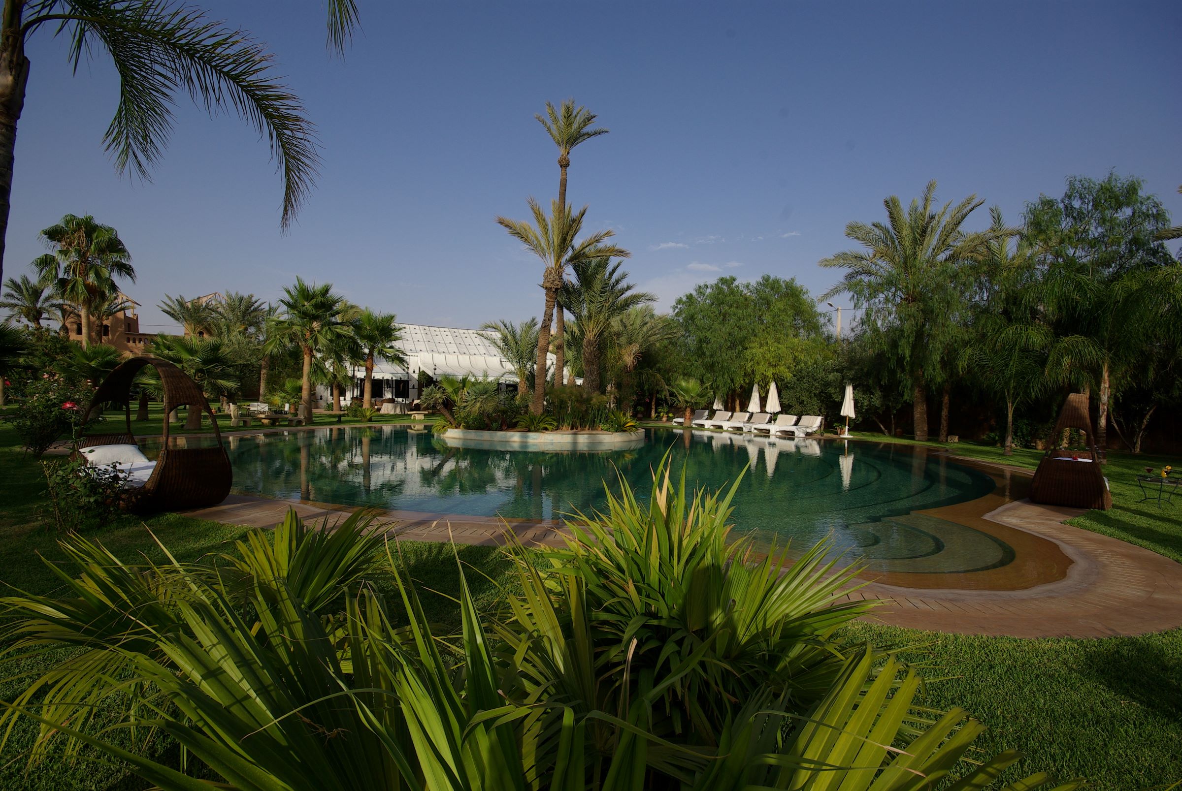 Une oasis de paix au coeur de la palmeraie de Marrakech, Palais K est une station touristique privée luxuriante disposant une immense piscine, loin de l’effervescence de la ville et de tout ce qui pourrait perturber les vacances à Marrakech dans cet endroit merveilleux, face aux montagnes enneigées de l’Atlas et les paysages majestueux.