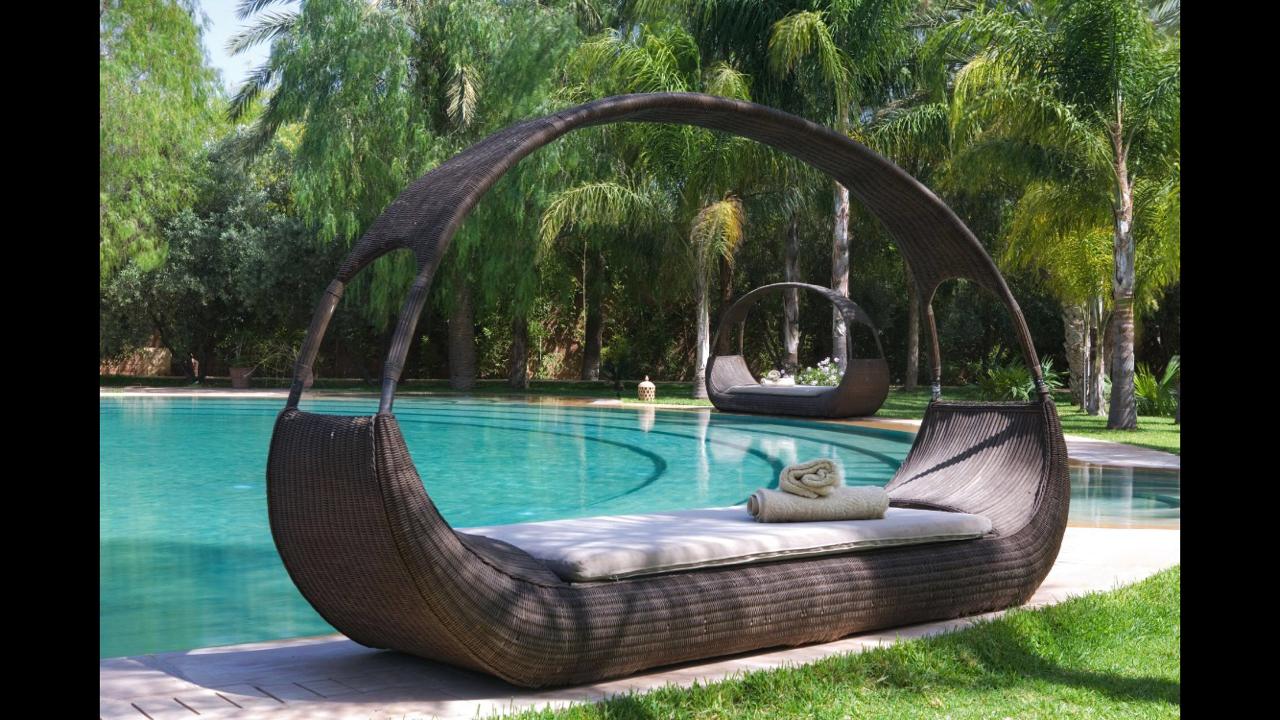 * Transats au bord de la piscine