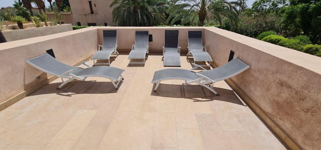 * Transats au bord de la piscine